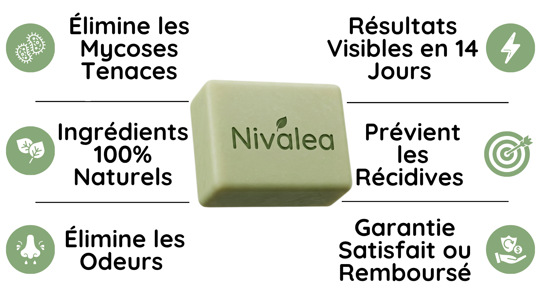 Essayez notre fameux savon Nivalea sans risque pendant 30 jours.Si vous n'êtes pas satisfait vous avez la possibilité de demander un remboursement intégral.