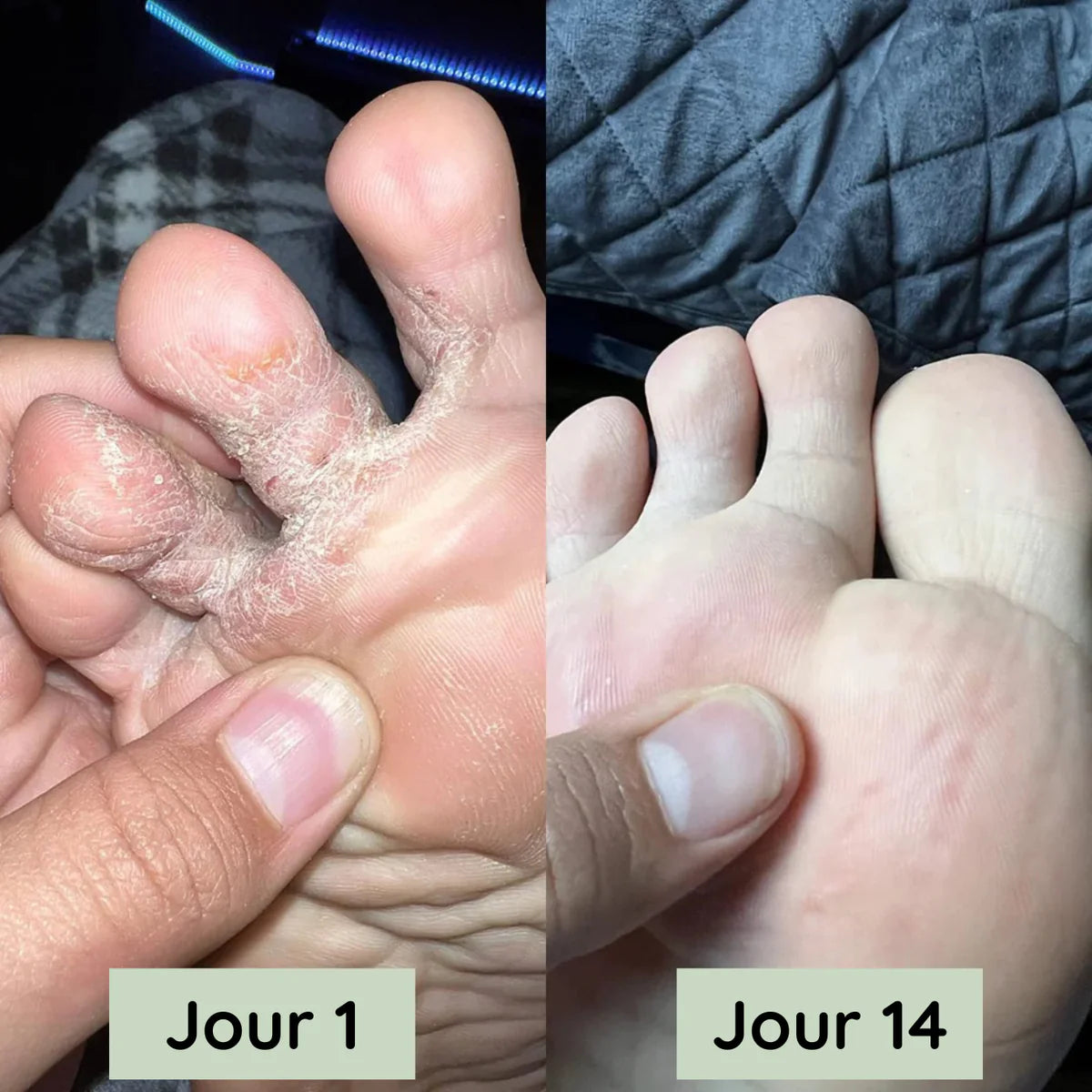 Pour des pieds clairs et confiants adaptés aux sandales et à marcher pieds nus, 3 à 4 semaines d'utilisation régulière fonctionnent le mieux. C'est le temps nécessaire pour éliminer complètement le champignon en profondeur.